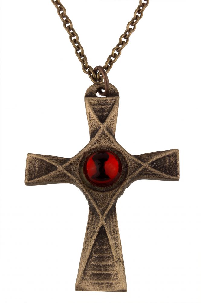 Das Bronzekreuz Licht mit rotem Stein und Kette zum umhängen